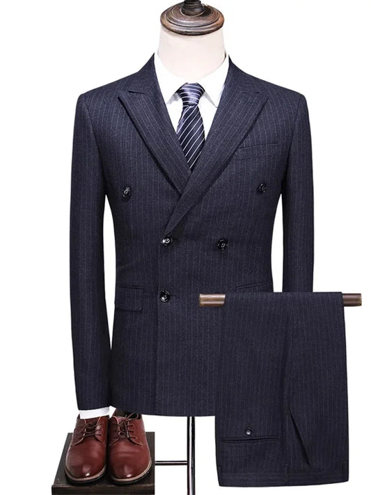 XS-XXXL Oliver Double-breasted Striped Formal 2 Piece Set - 3 COLOURS